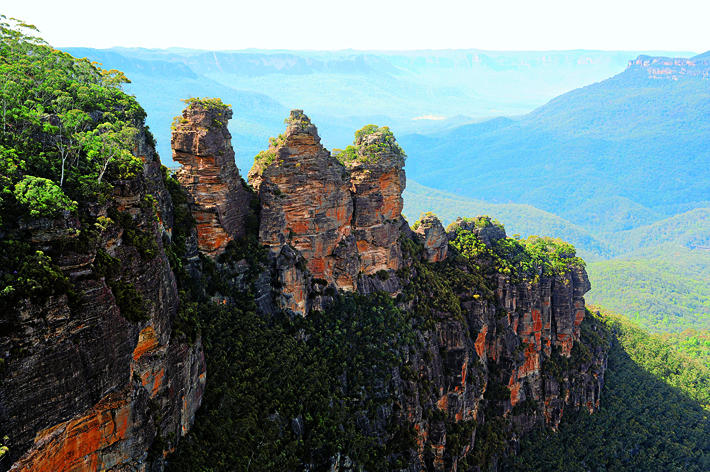 悉尼近郊的藍山國家公園(Blue Mountains)一帶已被列入世界遺產的景區, 是與大自然作親密接觸的好地方。而位於Jamison Valley 懸崖之上的Scenic World 車站,遊客可選擇4種不同欣賞藍山風景的交通途徑──Skyway、Cableway、Railway 及Walkway。這4條路線各有特色,不過無論你乘吊車抑或徒步,這兒的美景都肯定叫你刻骨銘心。