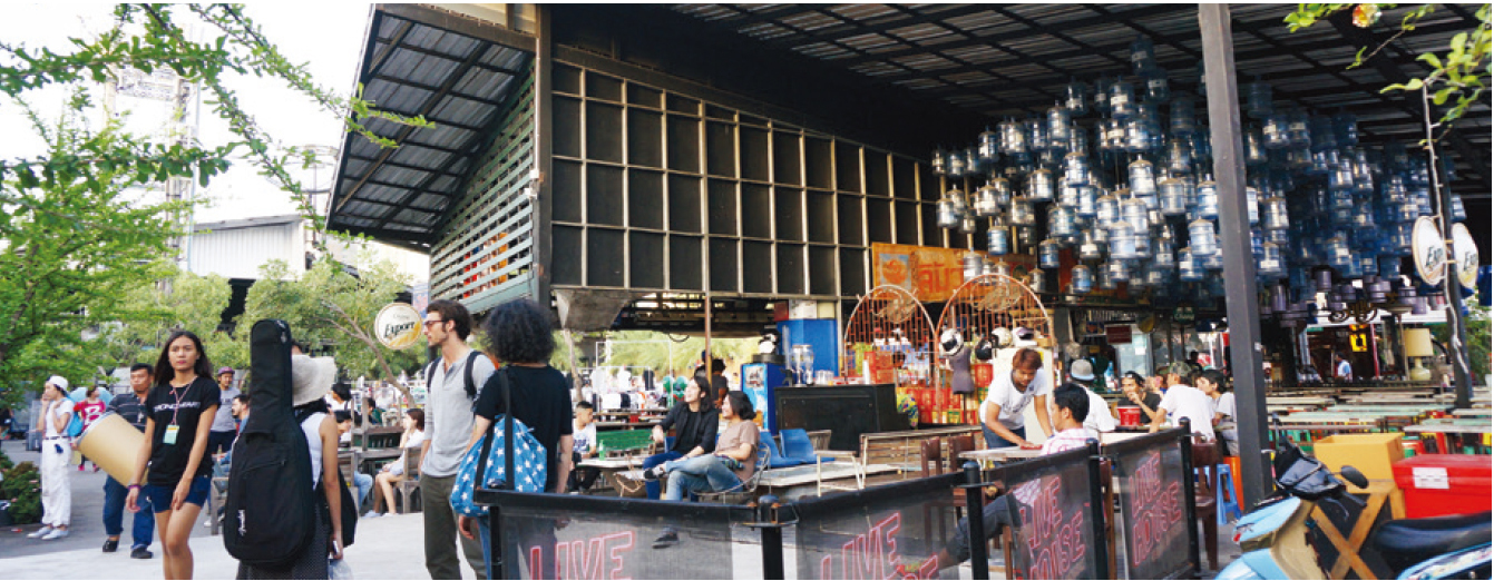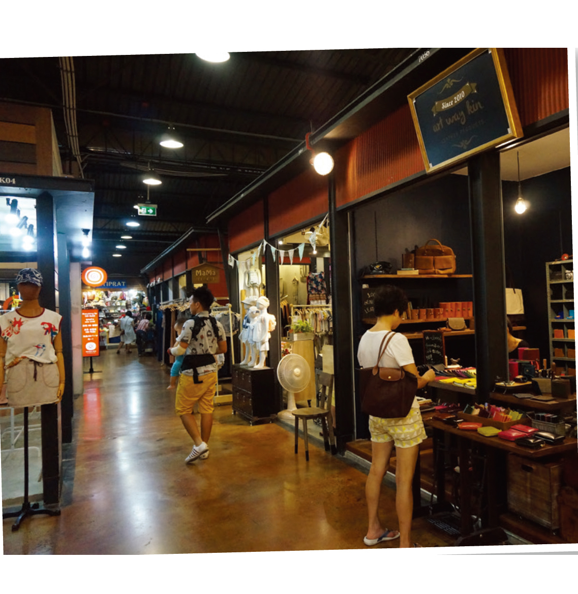 既然去開JatuJak Market,就記得要留到5點,去一去設在附近公園的假日夜市── Jatujak Green Market(JJ Green)。這個市集又稱綠化版的翟道翟市場,因為除了文青小店、酒吧餐廳外,那裡最多的就是二手物品,例如衫褲鞋襪、手飾配件、擺設家品等。JJ green 的另一部份是創意市集,有不少新一代的本土設計師會到此擺賣自己的新作品。市集也有熟食攤檔及餐廳,所以不用怕沒處醫肚,走到累時就去熟食區吃吃地道小食,非常方便。