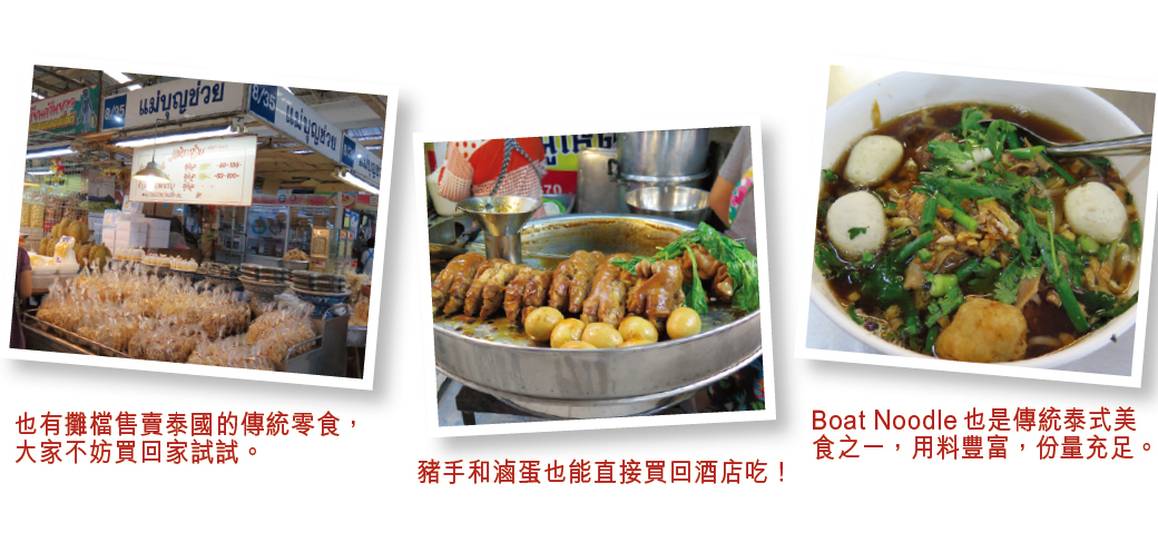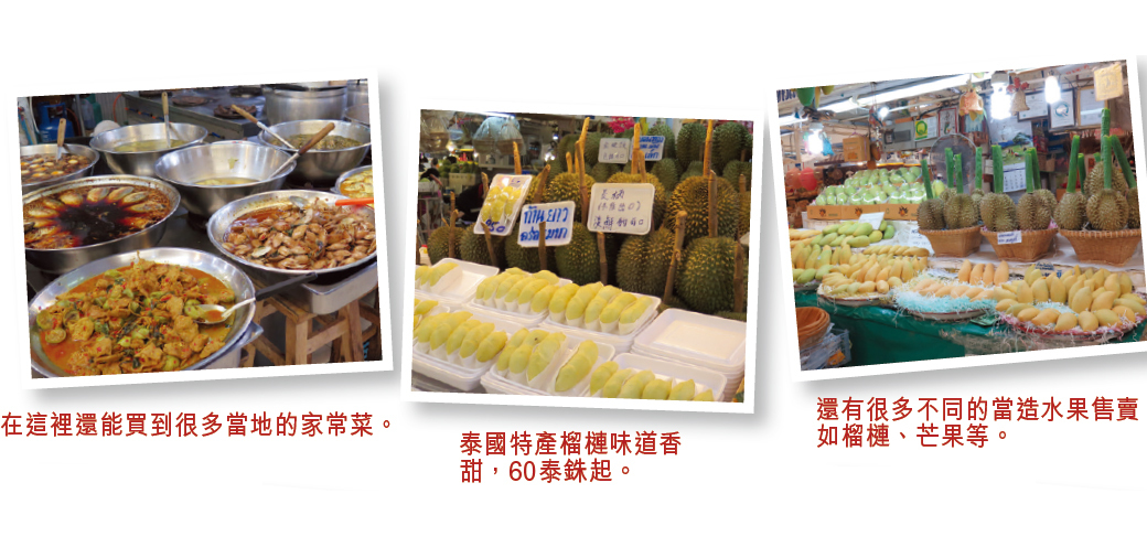 行完JJ market,衫褲鞋襪都應該買夠本了吧?不如過對面馬路的柯多哥飲食市集買些食得落肚的手信回去吧!這個市集真身是熟食市場,很多泰國地道的美食都可以在這裡吃到,款式選擇多又抵食,例如木瓜沙律、Boat Noodle、豬手飯、海南雞飯等都可找到。此外,這裡還有很多水果檔,多款當造的水果任揀,例如泰國特產榴槤都只不過是40至50泰銖就有交易,快趁低價多入手幾個!