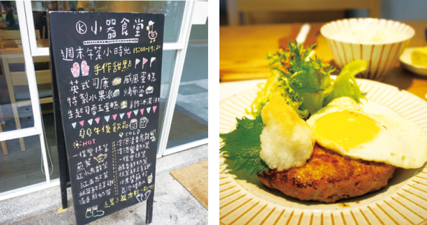 小器食堂的老闆森賢一先生原是做日本器皿進口的生意,而「小器」其實是指日本進口器皿的意思。食堂主要售賣日本家常飯,以定食為主,配合日系簡約精緻的餐具,讓食家體驗傳統日本風格。食堂更與當地小農合作,使用在地的有機蔬果煮食,貫徹其簡單生活的理念。