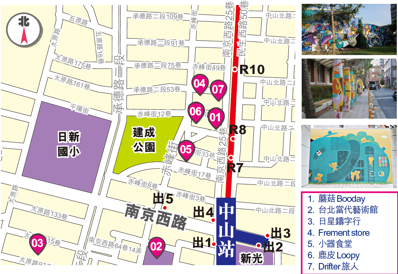 在捷運中山站至雙連站之間的赤峰街一帶,本是中山區的老街,以五金與汽車零件的店鋪為主,所以亦被稱為「打鐵街」。隨著近年台灣的文青潮大熱,這條小街陸續進駐了充滿文青氣息的商店及食肆,加上街頭巷尾不經意的塗鴉,飽歷風霜的民居古宅,令這一帶更具人文氣息,與中山的中產氛圍大相逕庭,非常有趣。