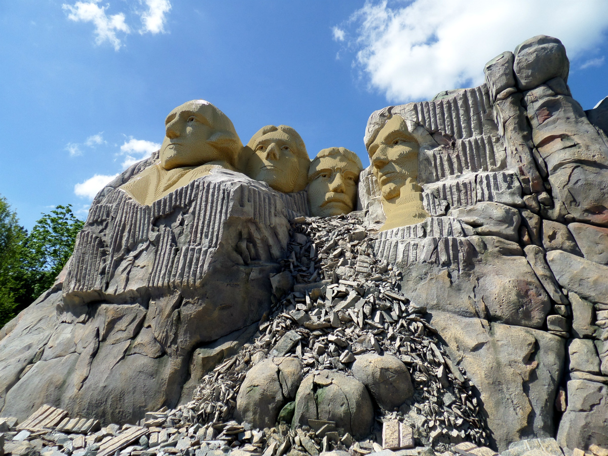 園中還有一座美國拉什莫爾峰石刻的複製品,用150萬塊積木拼成的美國總統華盛頓、傑佛遜、林肯和羅斯福的塑像,栩栩如生。