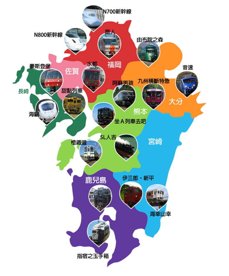 九州幅員遼闊,自然景觀又多元化,就造了觀光列車(D&S, 即Design and Story)的發展。未計與其他地方的連接,單單九州島上已有接近20種觀光列車行走,而且每款都各有特色,是火車迷真正的天堂。
