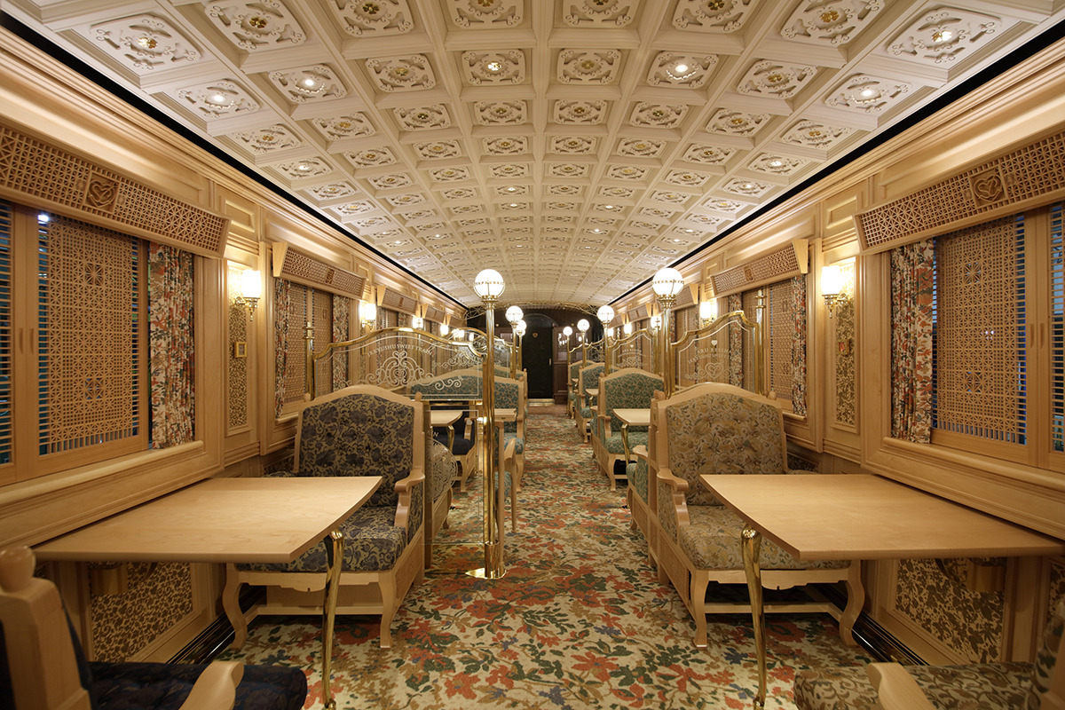 九州的觀光火車各具風格,甜點列車(或る列車)肯定是行華麗路線。這條在2015年才開通的路線,由外觀至提供的服務都可謂5星級。甜點列車由舊車廂改建,出自JR名設計師水戶岡銳治的手筆,內裡以楓木配以細緻的花紋圖案,完全是日本頂級工藝show-off之作。既稱為甜點列車,食物水準當然是超高水準,菜式米芝蓮二星級大廚成澤由浩主理,並且定期更新,務使乘客都能品嚐最當造的美食。