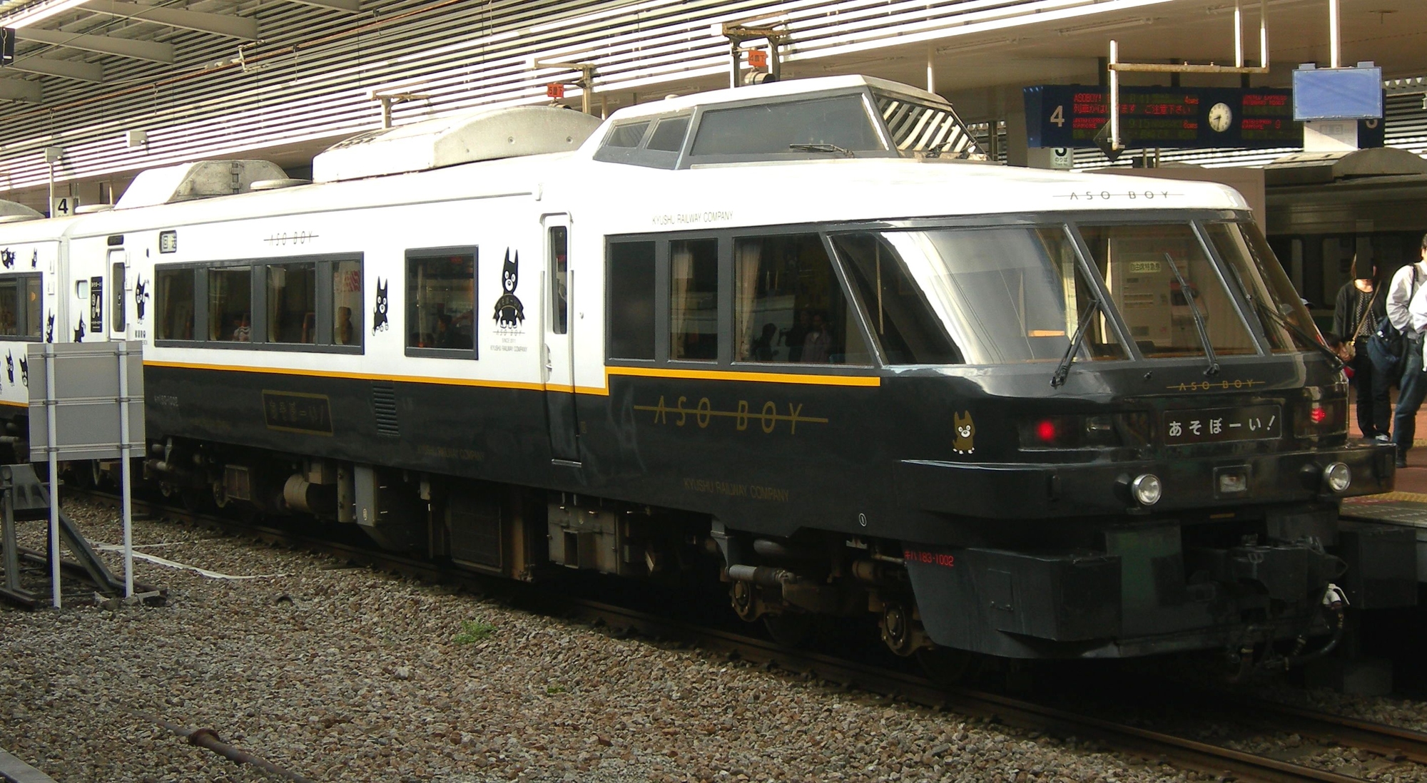 ASO BOY「阿蘇男孩!」於2011年開通,原本是往返熊本至宮地之間,但因為2016年的熊本地震,列車暫時只行經博多到北九州市的門司港。ASO BOY以可愛的狗狗「小黑」為主題,全車貫徹童真無限的概念,車廂內不但有圖書和玩具,甚至有波波池給「小老闆」們盡興。雖然暫時只提供有限服務,但預算2018年初列車服務會回復正常,屆時行車時又再可以欣賞到阿蘇火山的壯麗景色。