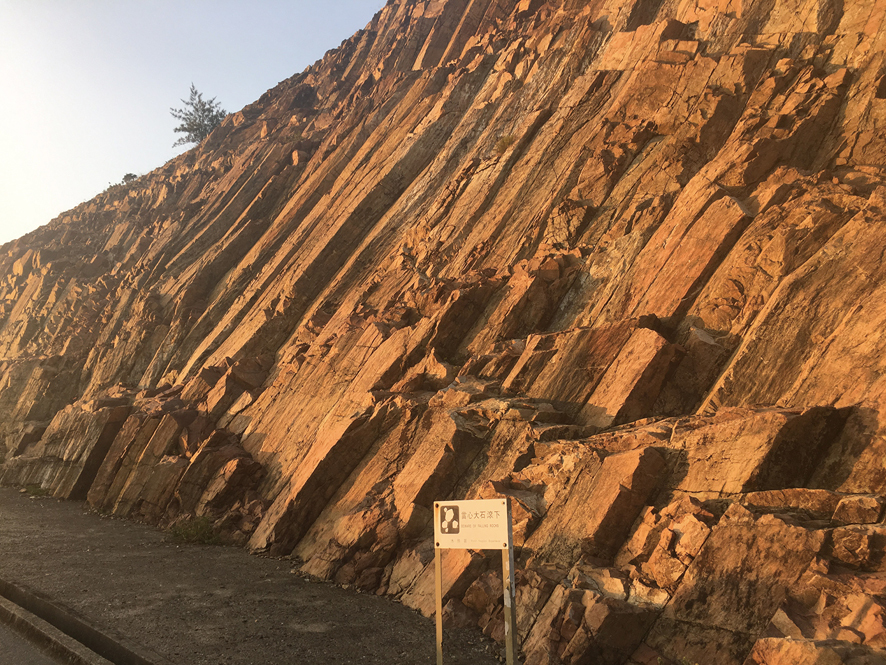 黃昏時份斷層景色更加壯麗。小朋友須特別小心,不要攀爬,當心大石落下。