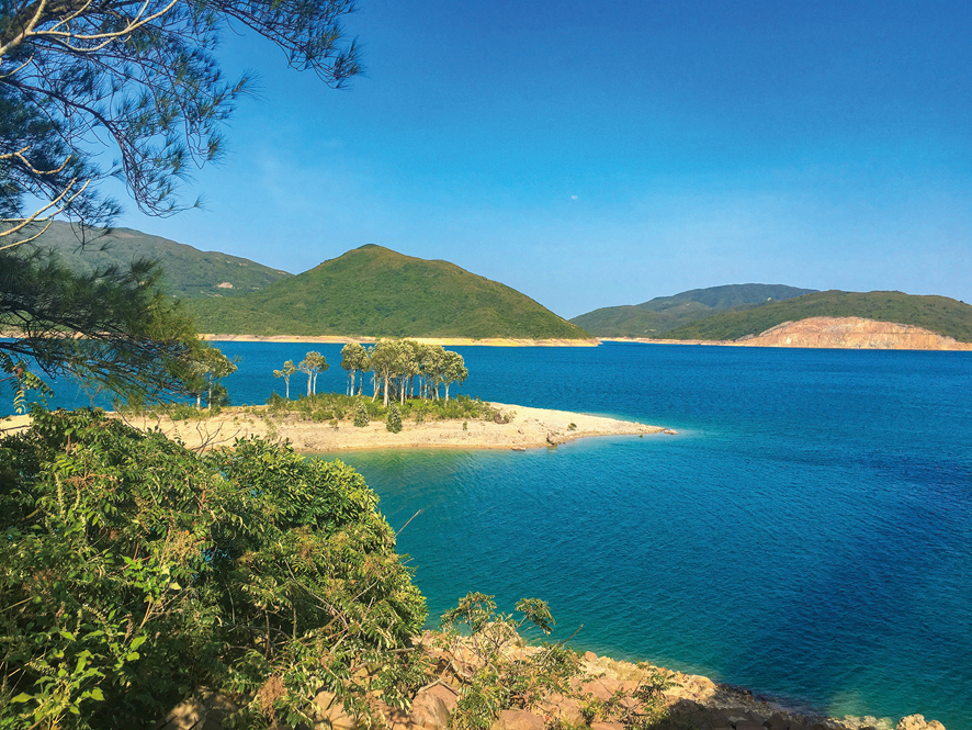在萬宜水庫眺望遠處海邊可見花山,由於長期受到海浪衝擊被切割成兩個部分,成為現時的破邊洲。巨大管風琴般的海蝕柱靜靜矗立在旁,現時新建木橋步道更可近觀海蝕洞,探索海蝕奇貌。
