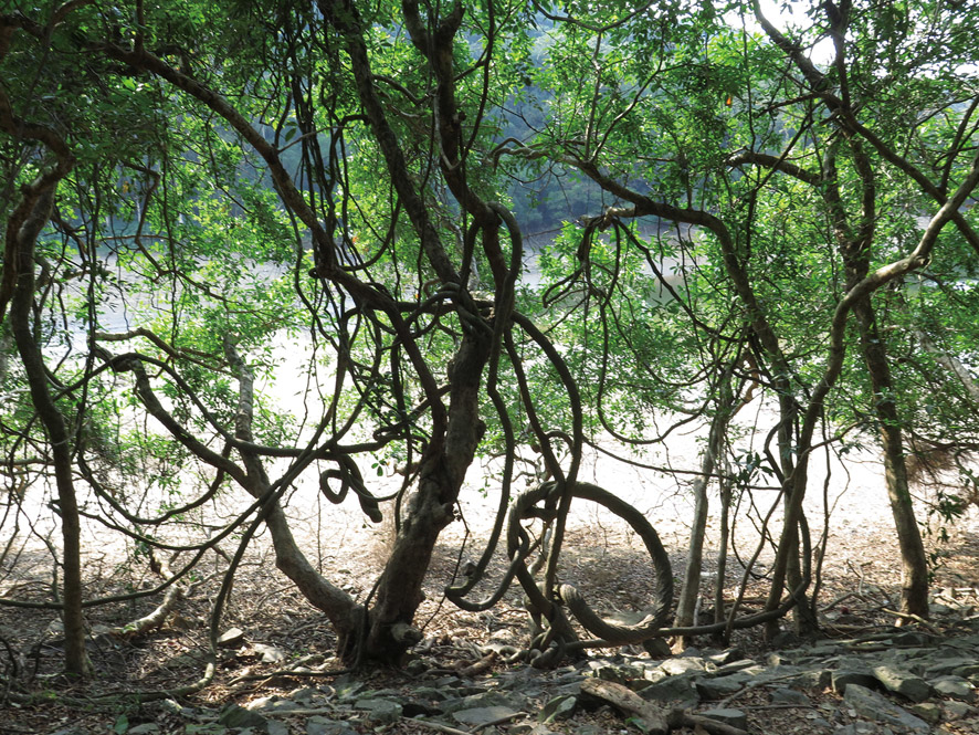 形狀奇特的樹幹,是水塘畔的特色景觀。