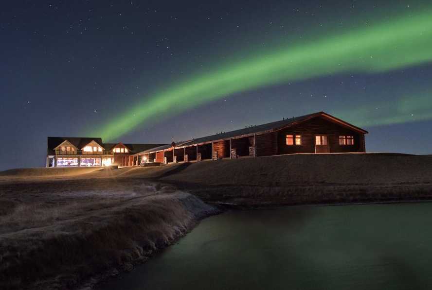南冰島唯一一間四星級酒店,方圓百里除了酒店以外就沒有其他建築物,遠離光害,而且設有極光提醒服務 (Northern lights wakeup call),非常適合看北極光。