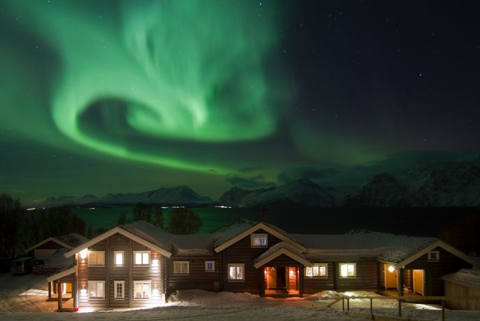 位於北極圈內的典型北歐松木風格酒店,背景是雪山及峽灣,必定能拍下美麗