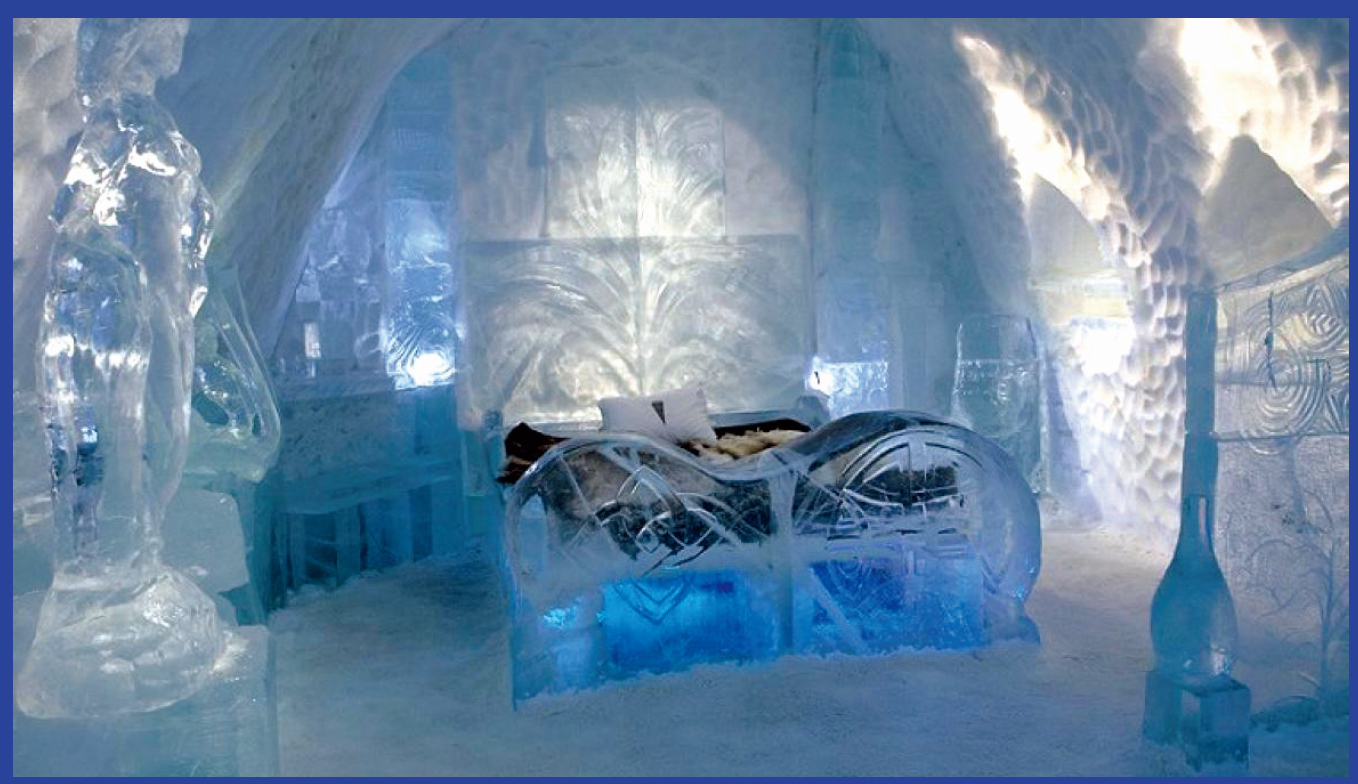 每年重建一次的冰酒店,內外裝修全由冰雪建造而成。酒店提供很多雪地活動如用雪上電單車追蹤北極光、狗拉雪橇等。