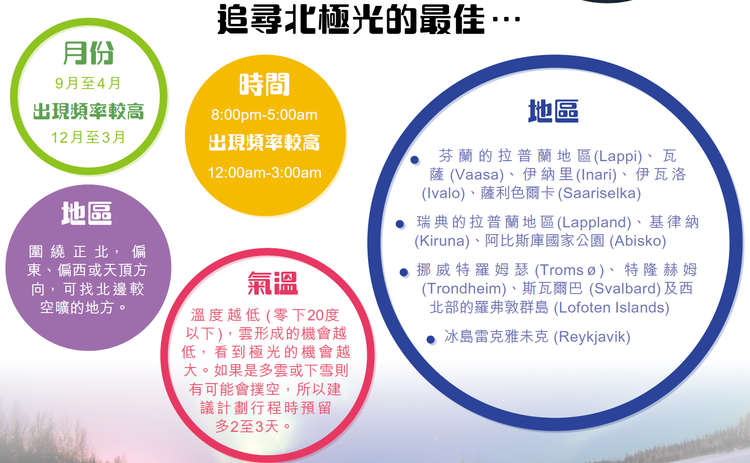 要觀賞極光, 雖說是「可遇不可求」, 但其實絕非單靠運氣,只要做多一點準備功夫,看到的機會亦會較大。從科學角度,極光由太陽釋放的帶電粒子衝擊地球大氣層表面,產生「電磁風暴」和「可見光」。由於地球本身是個大磁鐵,粒子被吸引到兩極,所以只要進入北極圈內,都有機會看到的!