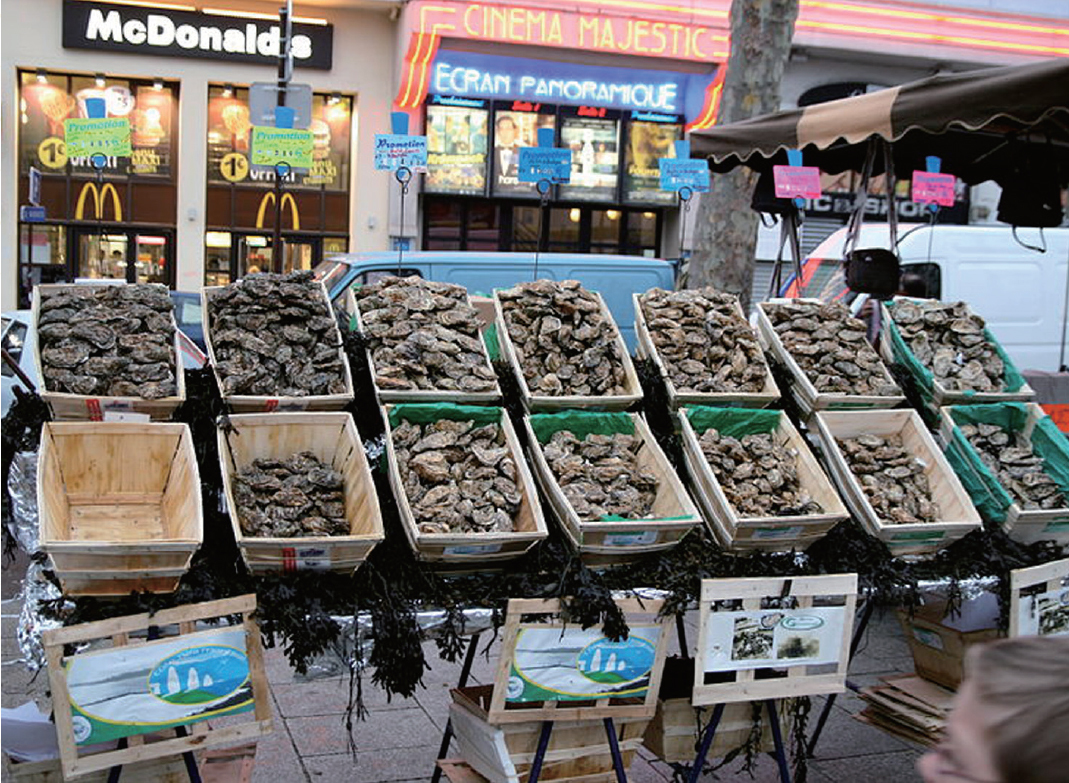 巴士底露天市集是一個每星期只開放兩天的大 型市場,售賣的東西種類非常多元化,由蔬果、海 鮮、乾果、芝士到衣服、工藝品、二手物品及五金都 有,包羅萬有。很多遊客都會在這裡大手採購香草、 醬料、橄欖等,作為手信,而且大部分攤販都設有咭機,不用擔心現金不足。另外,順道來這邊填飽肚亦 是個不錯的選擇,因為它有很多小食檔, 而法式蛋餅Crêpe 及即開生蠔都是人氣之選。