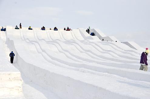 提供了各種用雪做的溜滑梯和滑雪遊艇等遊樂設施,且在體育館內設有大規模的休息區及飲食區,有得玩有得食。