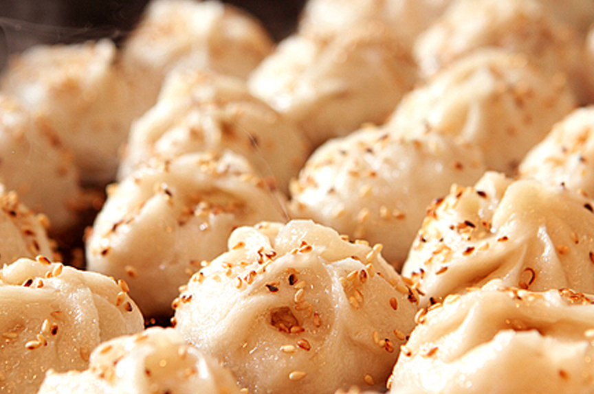 採用傳統上海製作方式,外皮Q 軟,內含脆甜高麗菜,口感特殊介乎於湯包及水煎包之間, 外皮灑上黑白芝麻,令人齒頰留香。