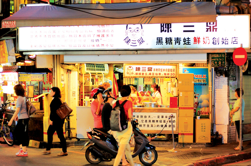 陳三鼎是公館夜市的飲品代表,黑糖青蛙下蛋始創店。所謂青蛙下蛋,是指口感QQ 的粉圓,這家店的青蛙撞奶、青蛙愛玉,幾乎無人不識!