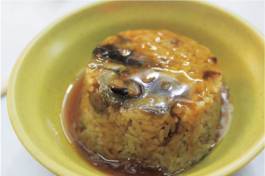 把生米、高湯放入筒中,加入肉燥後一起蒸,一個接一個去做,蒸出來的米糕,滲入了竹筒的清香,肉燥的肉滲在竹筒內全數保存,每一口都令人回味!