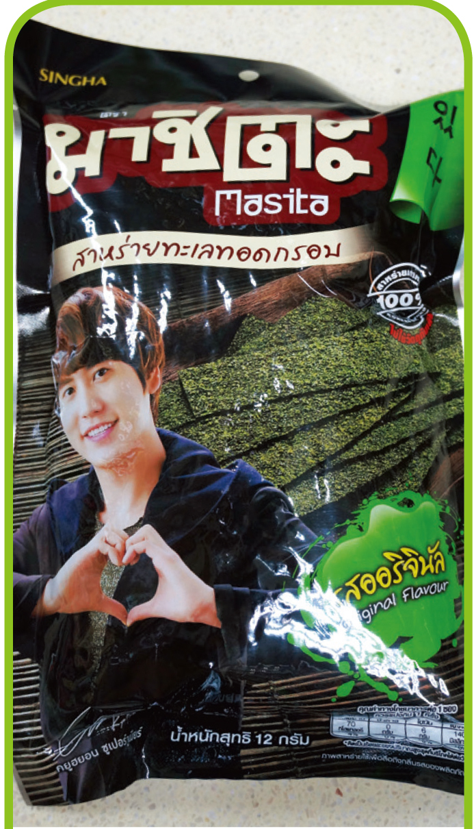 韓國明星Super Junior圭賢代言的泰國本地牌子紫菜,有韓星的加持下,人氣度急升。