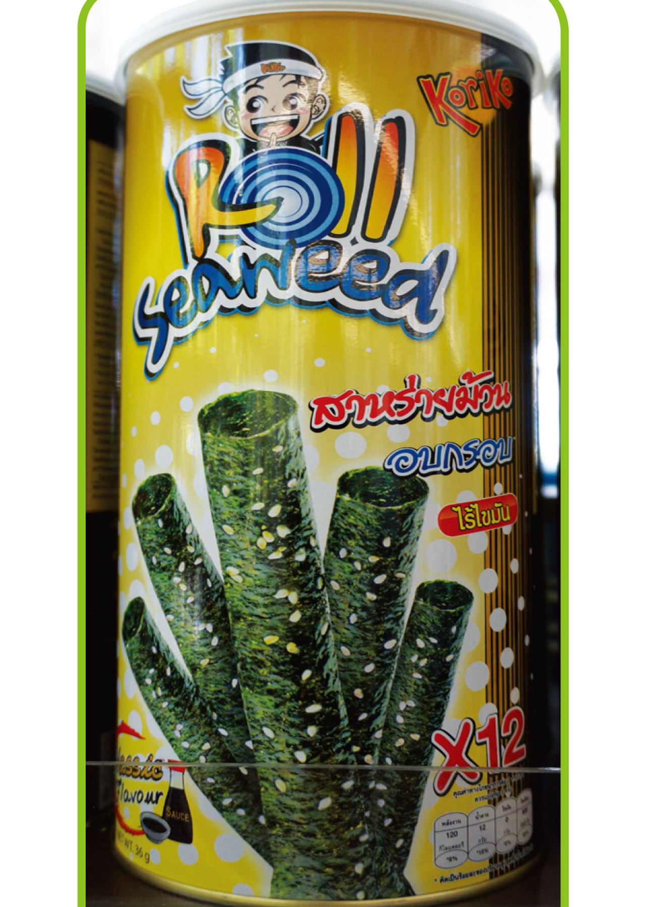 Roll Seaweed,醬油口味的條狀芝麻紫菜卷,是小老闆之外的另一人氣商品。