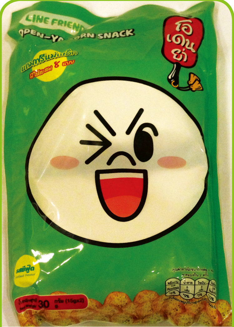 Line公仔包裝造型的泰版真魷味,這是紫菜口味,在便利店幾乎被掃空。