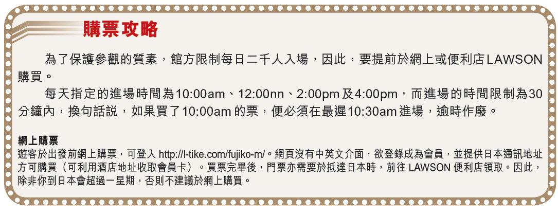 營業時間: 10:00am-6:00pm(分四個時段入場),星期二及12 月30 日至1 月3 日休息