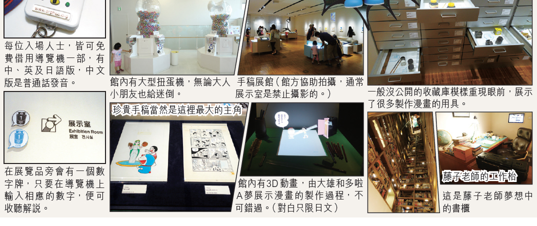 這所博物館由藤子‧F‧ 不二雄的遺孀藤本正子負責籌備,全館共收藏了5萬張珍貴原稿,輪流展出約140件作品。館內除了展示室外,更重現藤子‧F‧ 不二雄的工作室,還有Café 與紀念品店。
